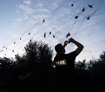 Herbeigerufen Polizei dokumentiert illegales Fangnetz mit Zugvogelopfern © SPA