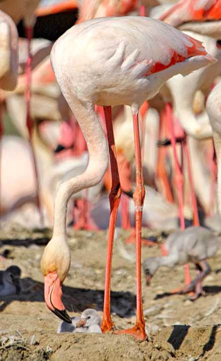 Rosaflamingo-Mutter huschelt ihr Küken © SPA.IT