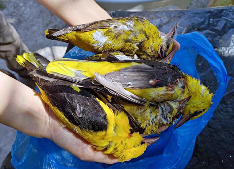 Auf Zakynthos abgeschossene streng geschützte Pirole © Komitee gegen den Vogelmord