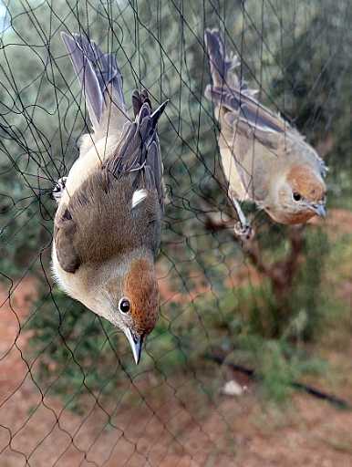 Mönchsgrasmücken-Weibchen gefangen in illegalem Fangnetz © Komitee gegen den Vogelmord