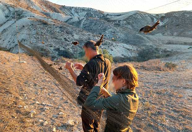 Vogelschützer-Team befreit Zugvögel aus verbotenem Fangnetz © Komitee gegen den Vogelmord