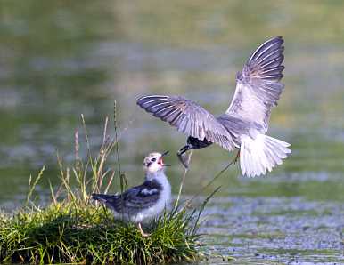 Trauerseeschwalbe füttert ein Junges © H. Glader