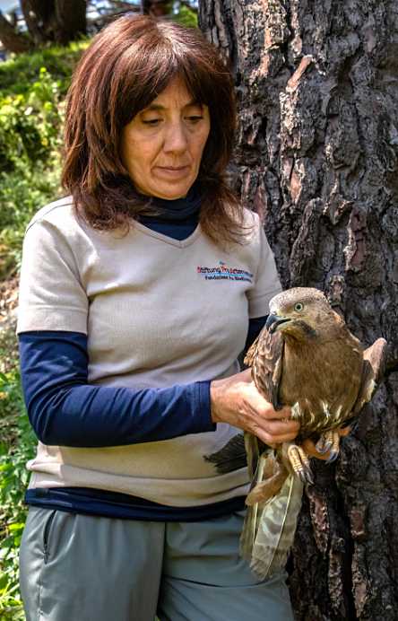 Deborah mit durch Schuss verletzem Wespenbussard © MWRC