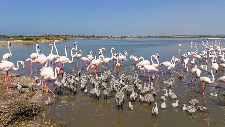 Rosaflamingo-Brutkolonie mit Küken in Lagune Pantano Longarini © SPA_IT
