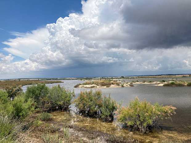 Dank des von uns im Mündungskanal der Lagune Pantano Longarini zur Mittelmeerküste gebauten soliden Stauwehrs mit Fischschleuse können wir die Wasserstände der Lagunen Pantani Cuba & Longarini auf eigenem Grund und Boden zum Wohle und Nutzen des Lagunen-Feuchtgebiets und der dort brütenden nahezu 120 Vogelarten kontrollieren. Selbst im Juli führten unsere beiden Lagunen noch immer Wasser, und das hat den hier wieder lebenden Moor- und Marmelenten, Brandgänsen, Rosaflamingos, Stelzenläufern, Seeschwalben, Vögeln der Feuchtgebiete und auch den Singvögeln mitsamt ihren hunderten erfolgreich aufgezogenen Jungen bisher die energieraubende Flucht und kräfteraubende Suche nach anderen noch wasserführenden Lebensräumen erspart.