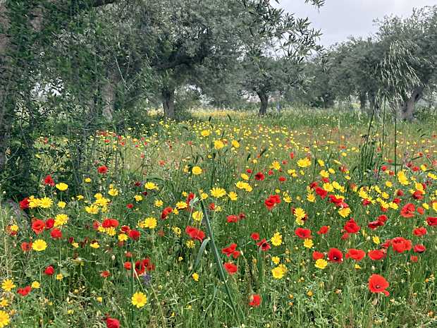Blüten- und artenreicher Olivenhain an unserer Lagune Pantano Cuba © SPA