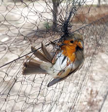 Rotkehlchen gefangen in illegalem Fangnetz © SPA