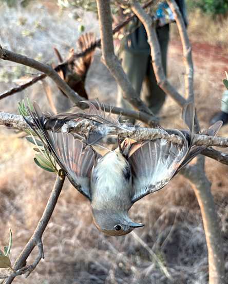 Mönchsgrasmücke wird aus illegalem Fangnetz befreit © Komitee gegen den Vogelmord
