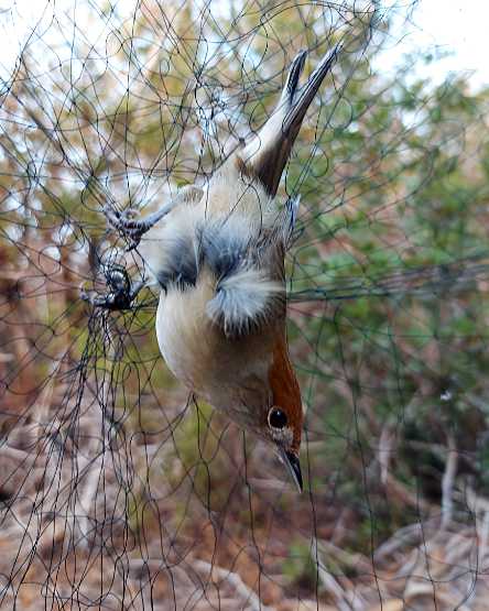 Mönchsgrasmücken-Weibchen im Fangnetz © Komitee gegen den Vogelmord