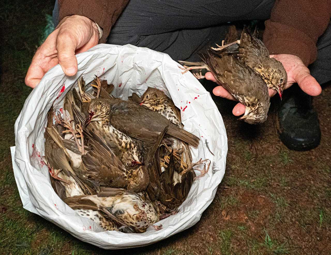 Illegally shot Song Thrushes © Committee Against Bird Slaughter (CABS)