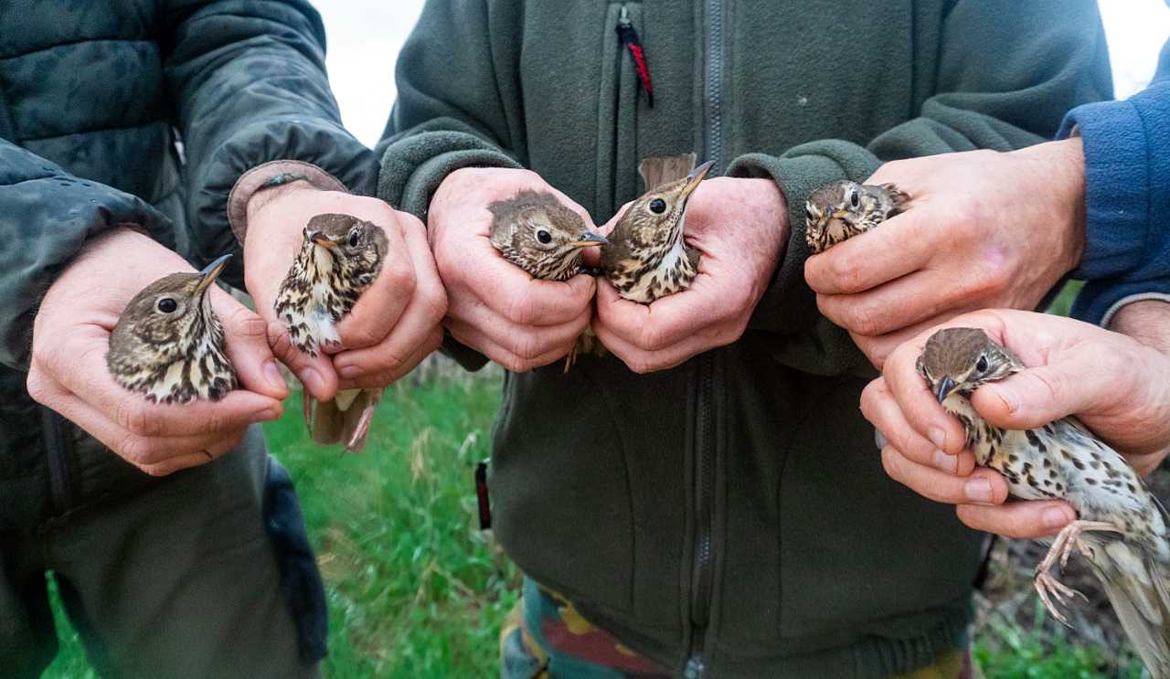 Song Thrushes freed from illegal mist net © Committee Against Bird Slaughter (CABS)