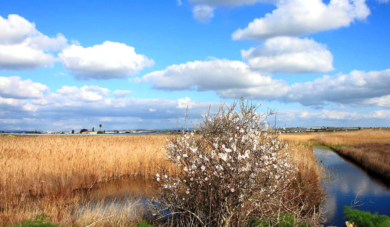 Pantano Longarini - flowering wild almond tree at the edge of the reeds on the newly purchased property © SPA
