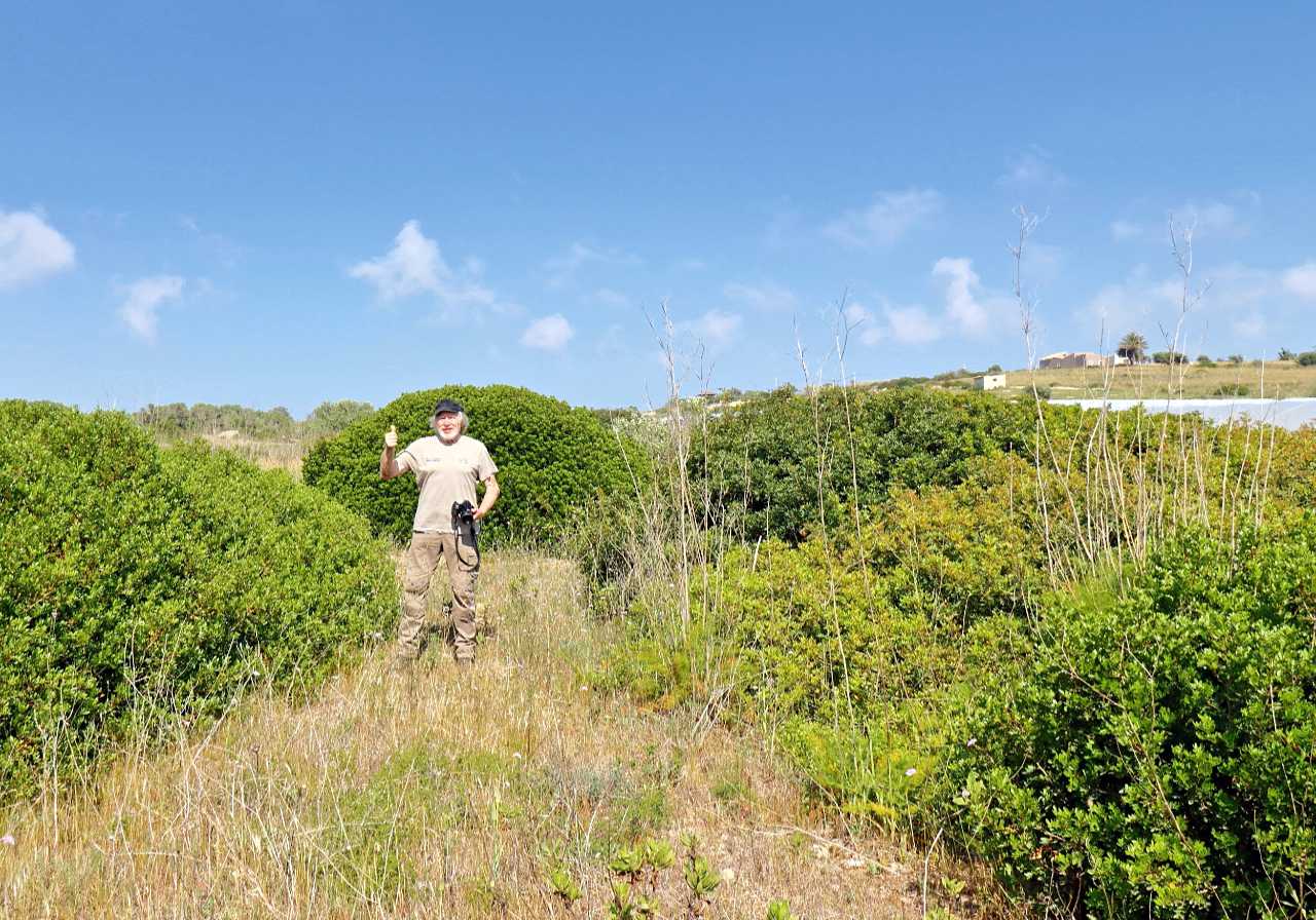 This plot of land is an insect and berry-rich, scrub-covered migratory bird resting and feeding site. Its purchase guarantees the survival of up to 30 migratory bird species, such as the Common Nightingale, European Stonechat, Whinchat, Meadow Pipit, Corn Bunting, Northern Wheatear and even the shy Spotted Flycatcher. On the left, It borders a 3-hectare plot of land completely covered with greenhouses, where tomatoes are grown intensively using massive amounts of pesticides and artificial fertilisers. Our efforts to purchase this plot of land as well continue!