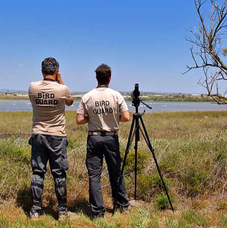 Bird Guards monitor Greater Flamingos in the Pantano Longarini lagoon © SPA_IT