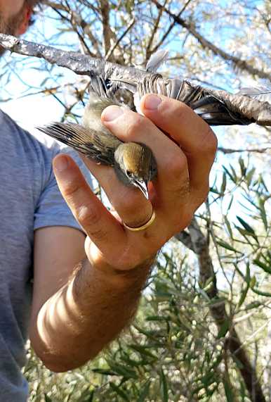 "Cyprus: male Eurasian Blackcap is freed from a mist net © Committee Against Bird Slaughter (CABS)"